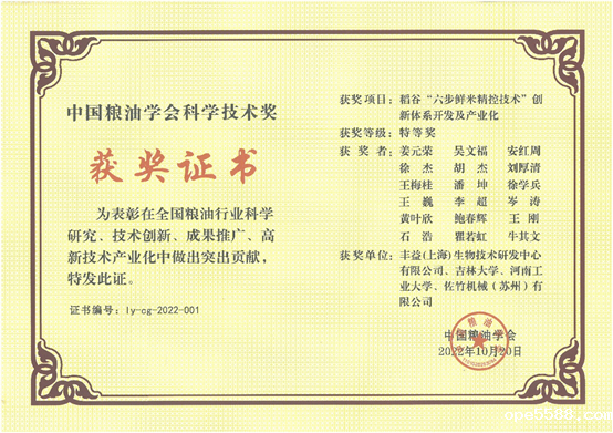 稻谷“六步鲜米精控技术”创新体系开发及产业化荣获 “2022年度中国粮油学会科学技术奖特等奖”
